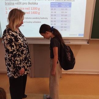 Žáci 4. a 5. tříd si vybrali program nazvaný „Zdravá školní brašna a jak správně sedět“, kde mj. viděli názornou ukázku, jak správně vybrat a nosit školní brašnu a zároveň také praktickou ukázku ergonomie sedu na školní židli.