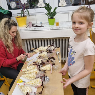 V adventním čase se třída 2. A, a také školní kuchyňka, proměnily v dílnu plnou vůně perníčků, a lesku třpytivých vánočních ozdob. Už tradiční vánoční tvoření dětí s rodiči a bývalými žáky proběhlo počátkem prosince a setkalo se s velkým zájmem. Společně jsme strávili příjemné odpoledne plné tvoření, spolupráce a předvánoční atmosféry.