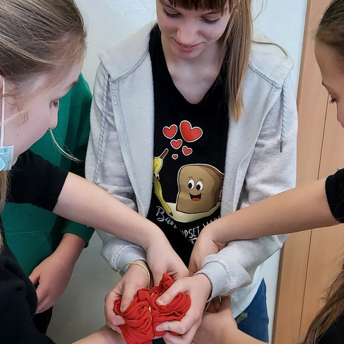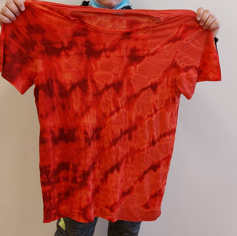 Výtvarná výchova se ve čtvrtek 17. února v 6. B nekonala úplně tradičním způsobem. Žáci totiž nepotřebovali výkres, barvy ani štětec. Jejich úkolem bylo donést si jednobarevné tričko, které si v hodině vlastnoručně vyzdobili technikou batikování savem. Nejprve si tričko dle vlastní fantazie různě smotali, srolovali, pomačkali a pevně stáhli provázkem. Pak už jen s napětím sledovali barevná kouzla, která vytvořilo na jejich tričku savo, do jehož roztoku tričko ponořili. Manipulaci se savem jsem si vzala na starosti já, tedy vyučující, aby nedošlo k poleptání žáků… Po řádném vymáchání výtvorů v čisté vodě pak žáci s překvapením trička rozmotávali a nestačili se divit, jak zajímavé kresby na něm mají...Doufám, že budou svá originální trika rádi nosit.